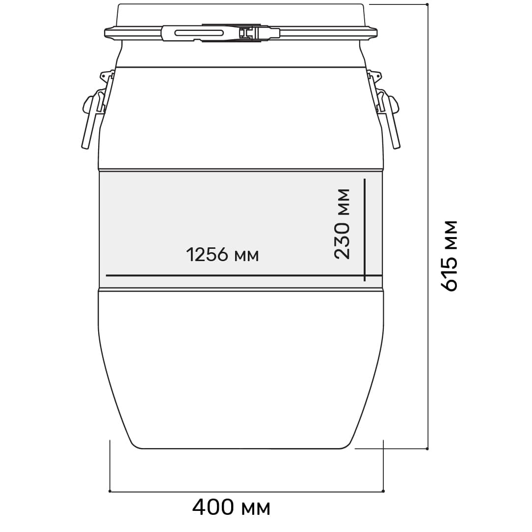 Изготовлена из прочного пищевого полиэтилена, безопасна для хранения продуктов, не впитывает запахи, устойчива к перепадам температур. Герметичная крышка с хомутом исключает протечки и попадание пыли, а значит, это надёжная бочка для пищевых продуктов — для меда, масла, маринадов и рассолов.