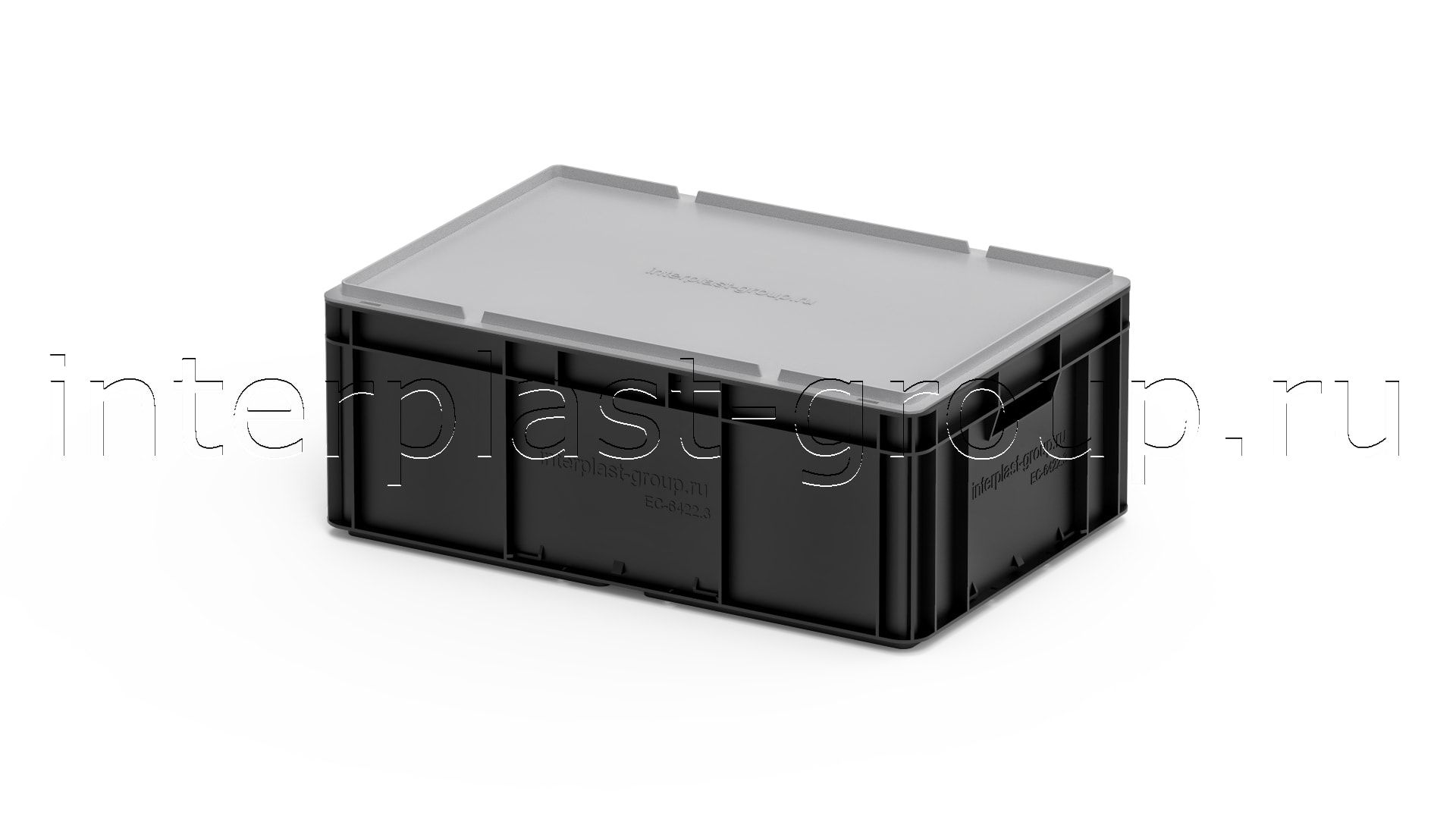 Евроконтейнер открытые ручки/усиленное дно (черный), 600x400x220 мм