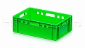 Зелёный ящик серии Е-2 удобен в роли ящика для хранения и контейнера для хранения в холодильных и морозильных камерах. Он также востребован как ящик для склада, складской ящик и функциональный ящик для транспортировки продукции на этапах приёмки, сортировки и отгрузки. Возможность штабелирования обеспечивает рациональное использование пространства.