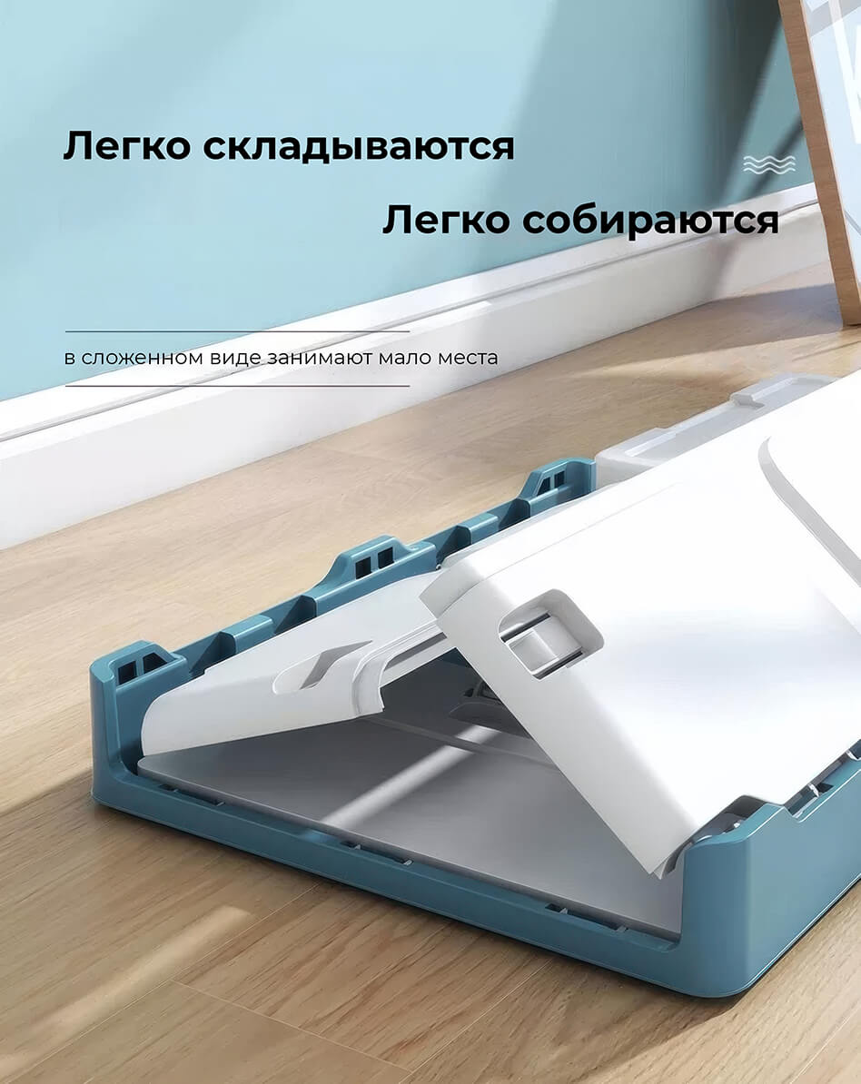 Ящик пластиковый складной белый, дно синее, 370х240х240 мм в Минске