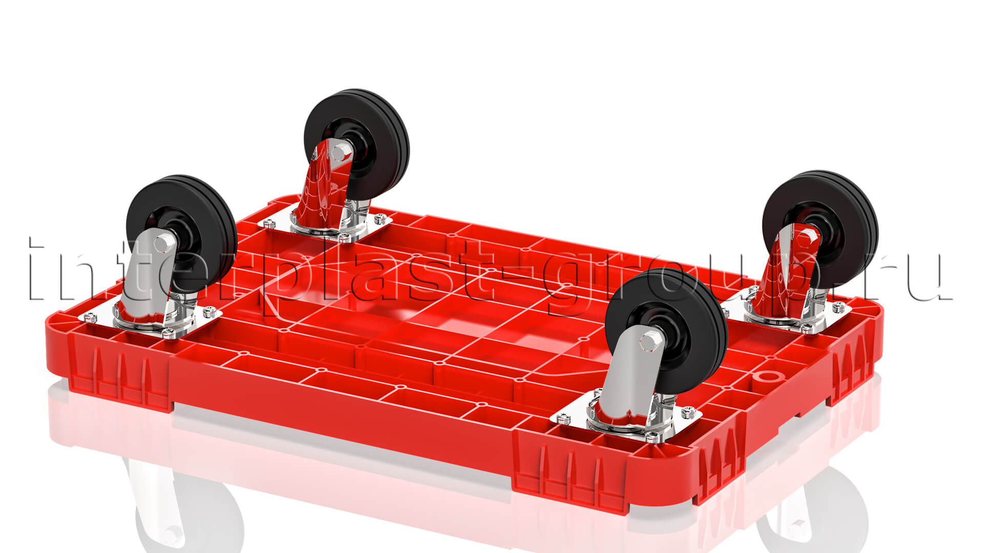 Тележка пластиковая сплошная без тормозов красная в Минске