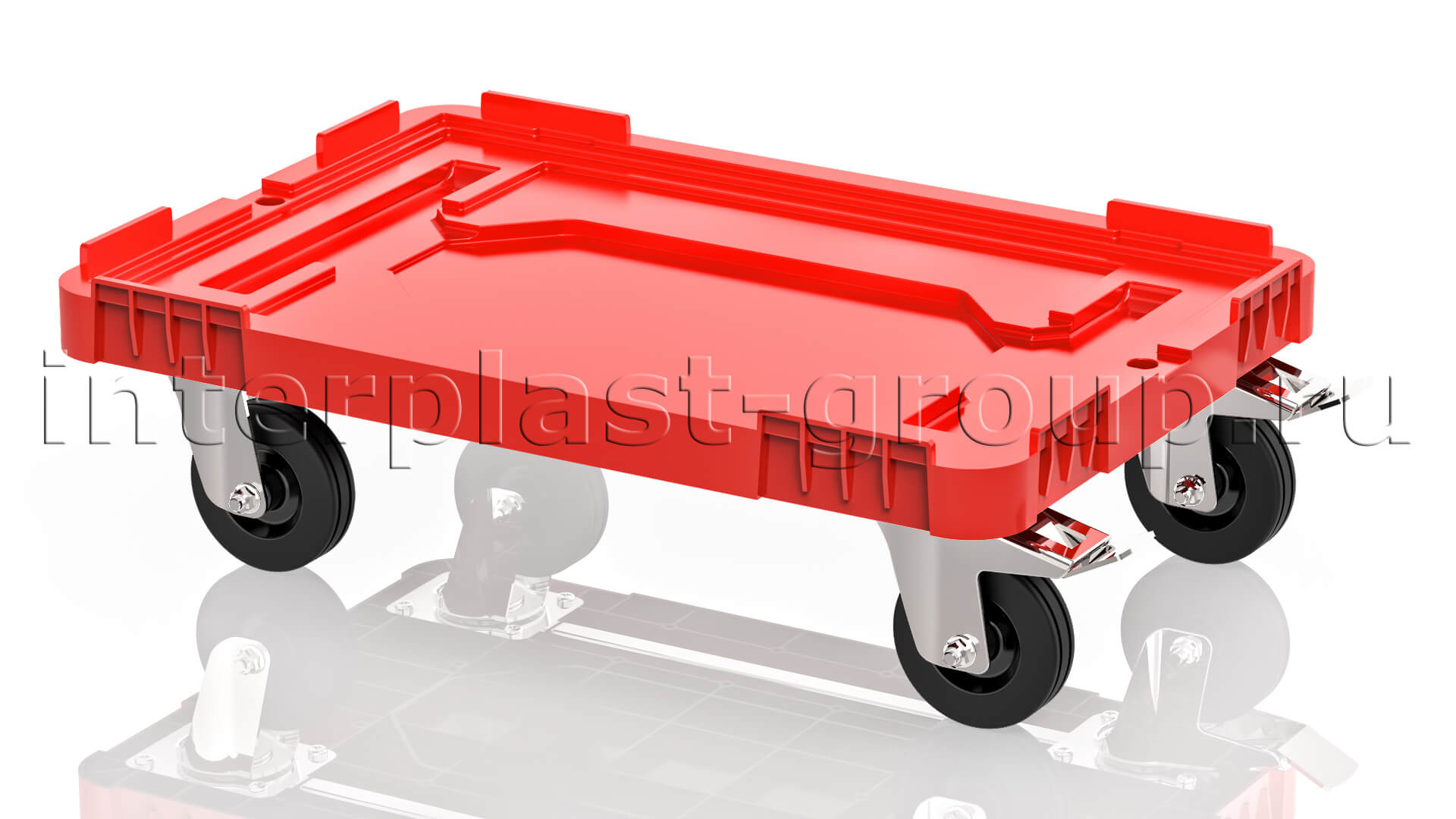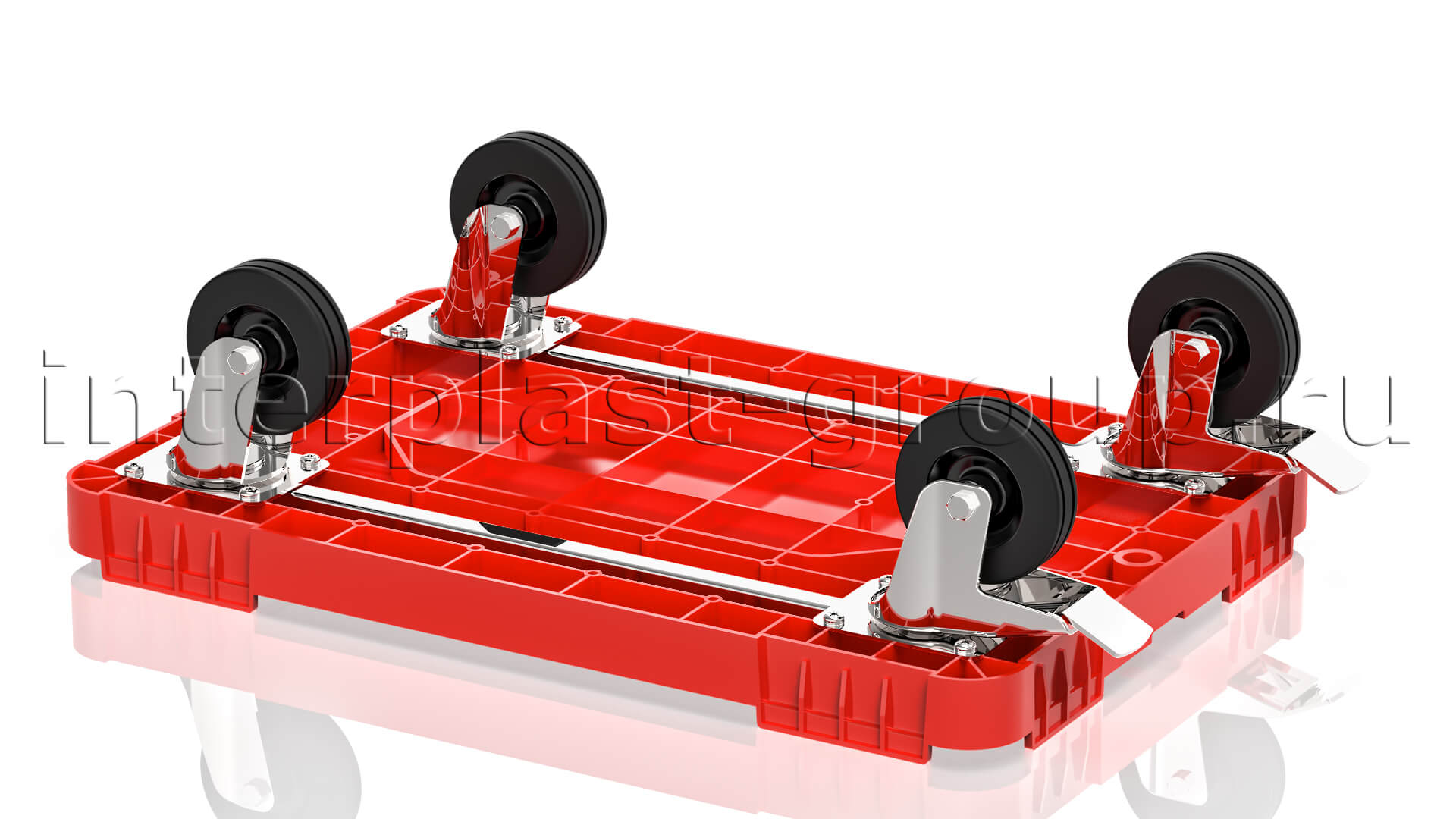 Тележка пластиковая сплошная 2 колеса с тормозом усиленная красная в Минске