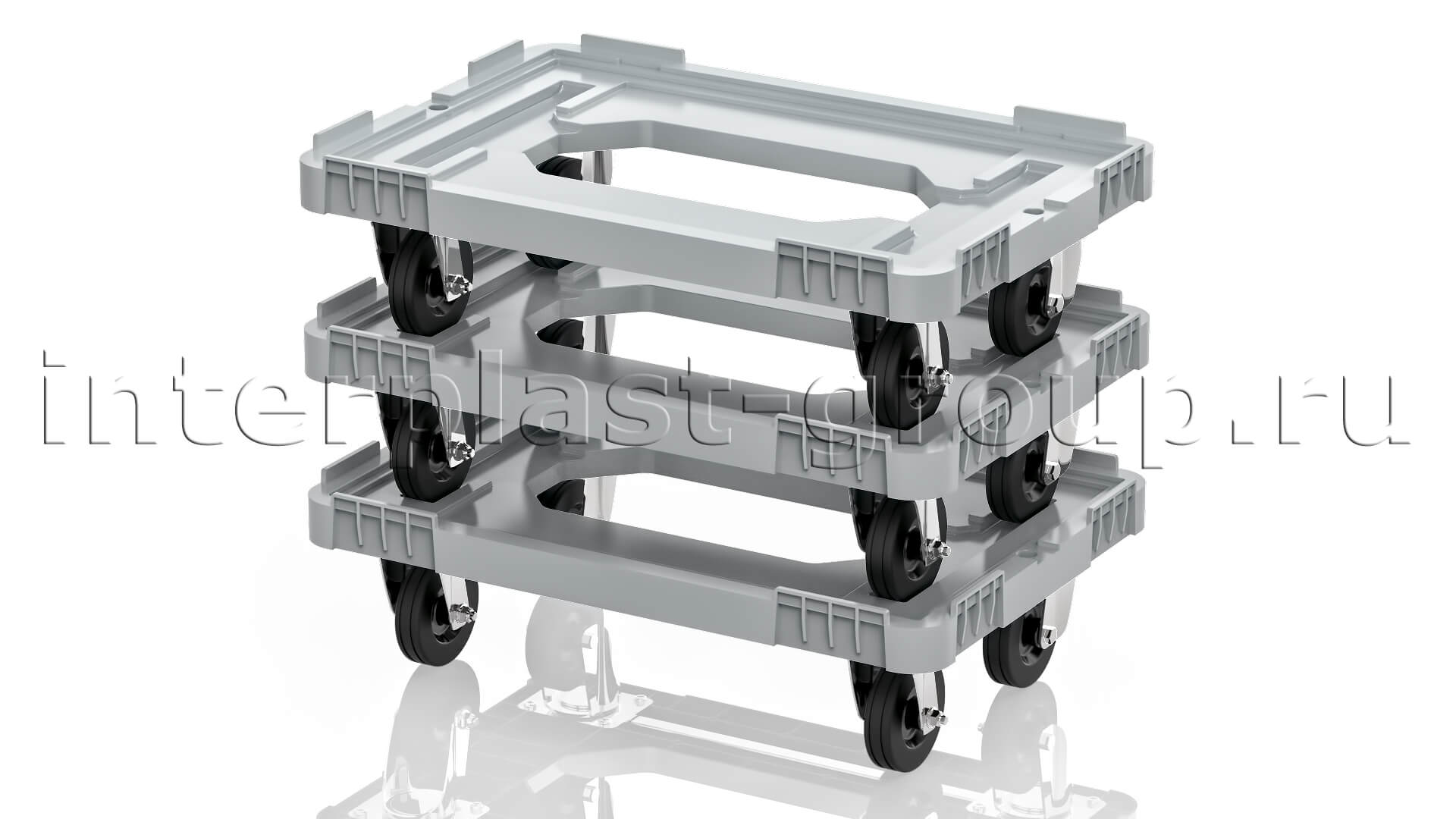 Тележка пластиковая с отверстием без тормозов усиленная серая в Минске