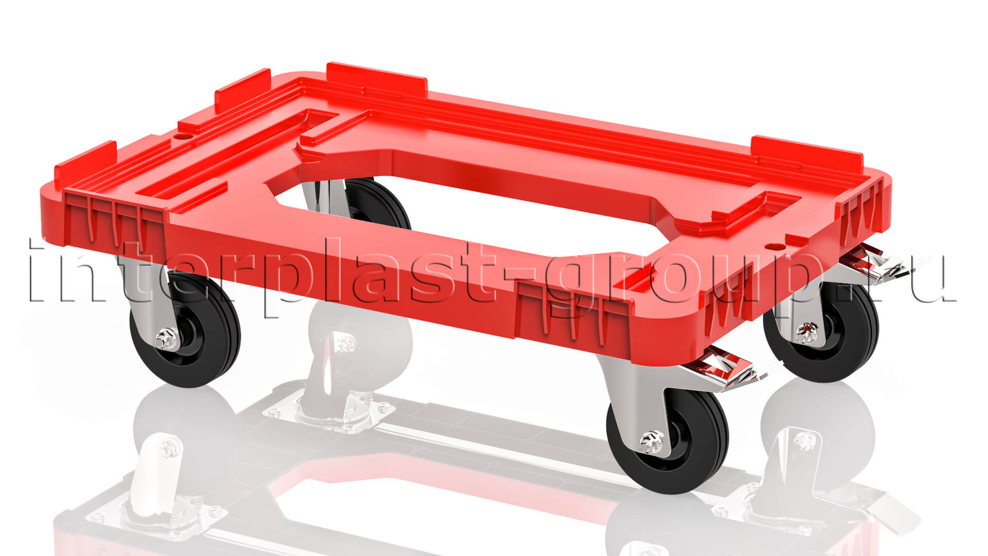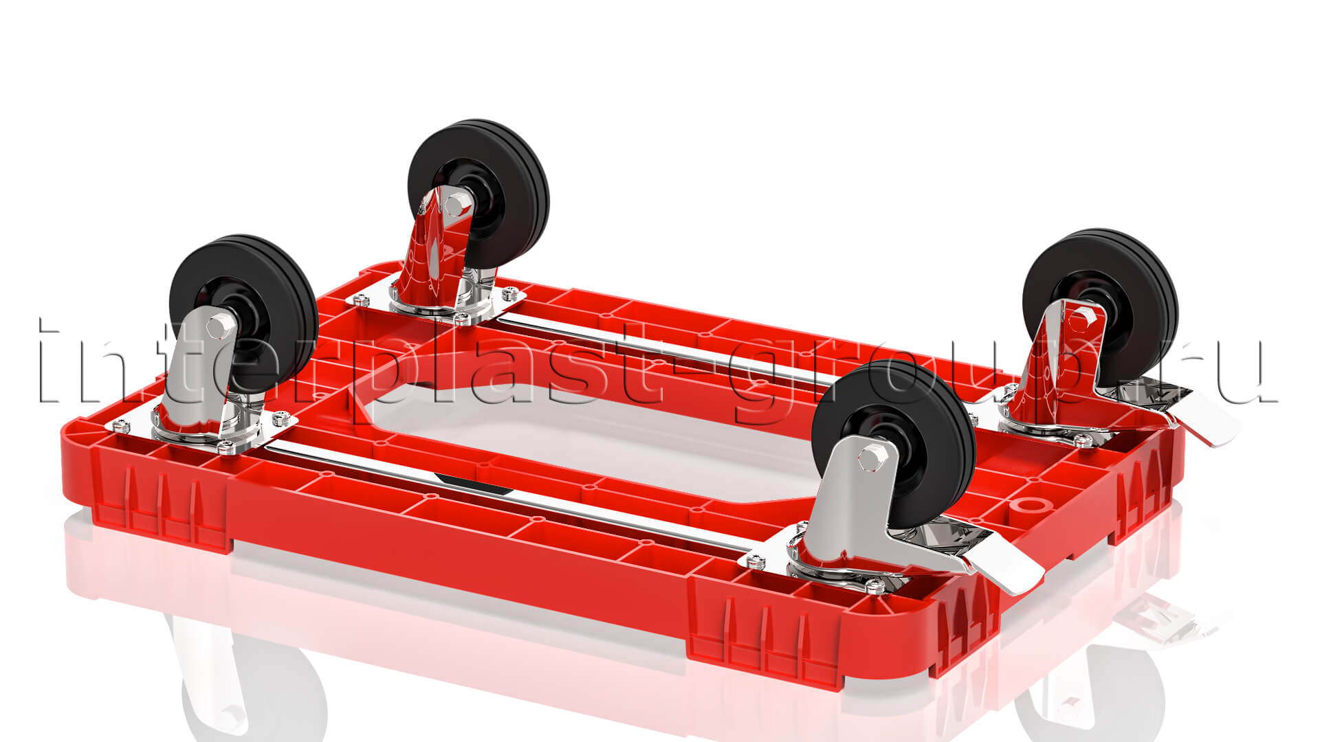 Тележка пластиковая с отверстием 2 колеса с тормозом усиленная красная в Минске